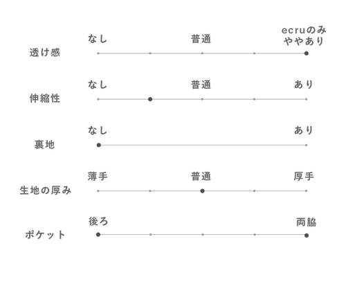 ストンと下に落ちるラインが美しく、カジュアルなボトムやデニム素材が苦手な方にもお使いいただきやすいアイテムとなっています。