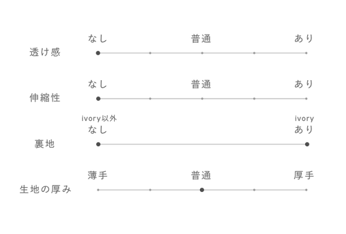 透け感を気にせずご着用していただけるよう、ivoryのみドライタッチな裏地をつけています。