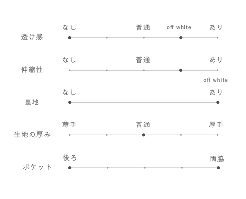 off whiteは、透け感を気にせずご着用いただけるよう肌馴染みの良いベージュの裏地を使用しています。