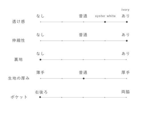 スカートの綺麗なシルエットを保つため、あえて両サイドにはポケットをお付けしていません。