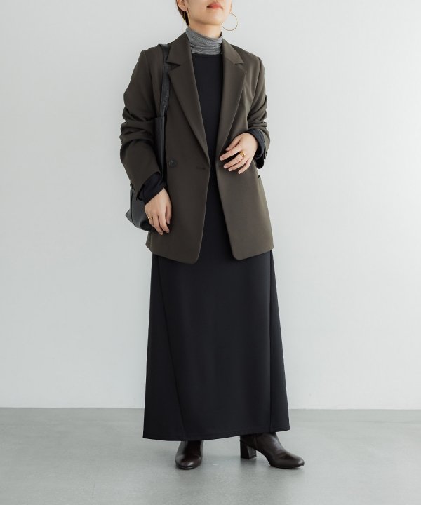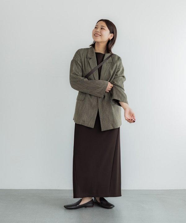 シルエットは、ボディラインを拾いすぎない、程よくゆとりを持たせたIラインに仕上げています。