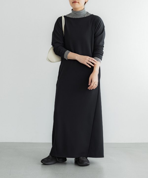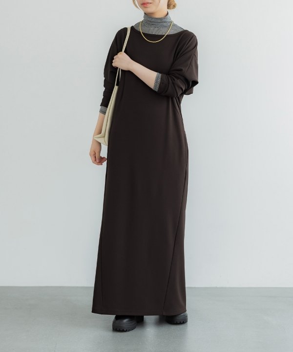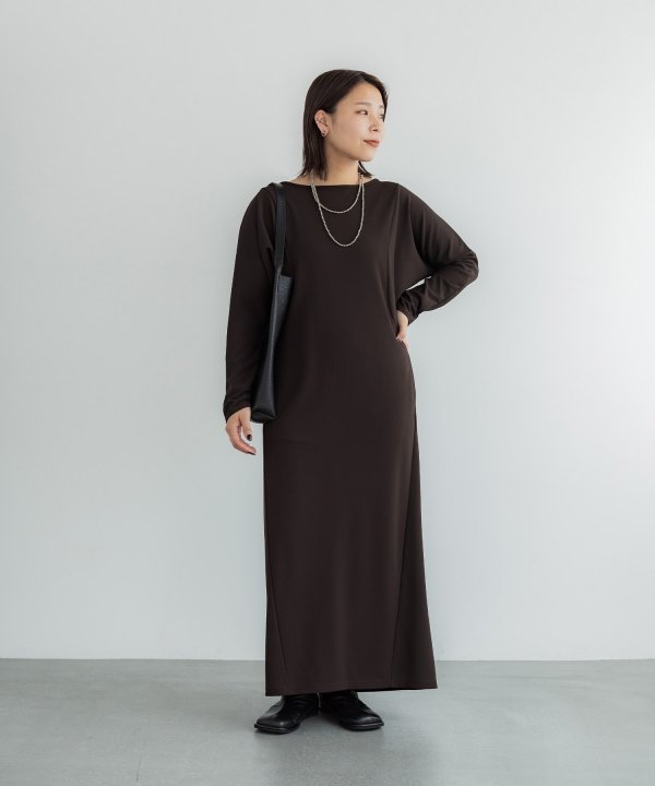 美しいシルエットが上品な印象の、伸縮性に優れたカットソーワンピース。