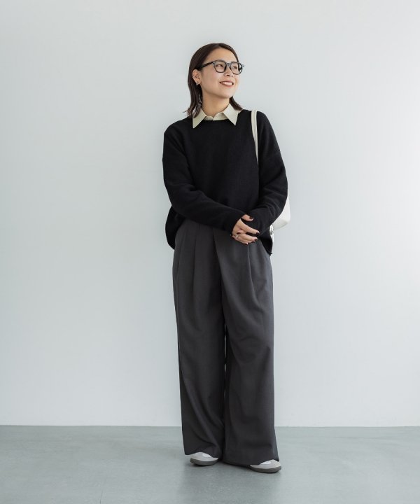 すっきりとした表情に仕上がるよう、ウール混率が高すぎないバランスのよい素材を採用しています。