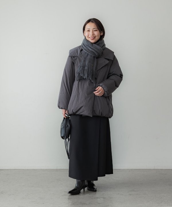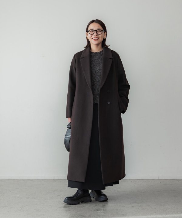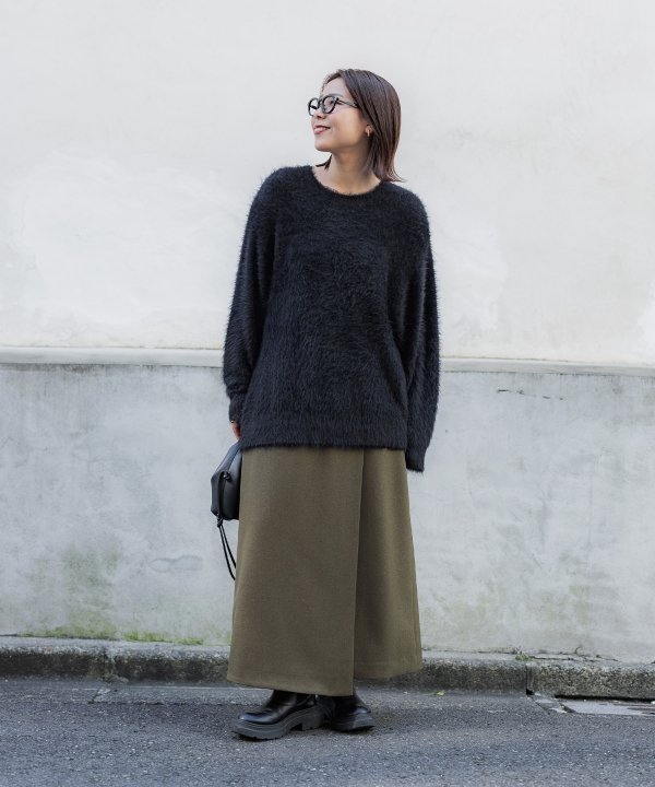ウールのような見え感ですが、起毛感が強すぎないサラッとした素材感のため、ニットなど表情のあるアイテムと組み合わせてもすっきりとご着用していただけます。