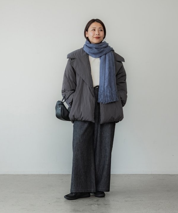 存在感がありながら膨らみすぎない絶妙なボリューム感に仕上げているため、スタンダードなワンループ巻きはもちろん、トップスの上からカーディガン代わりに肩掛けしたり、サッと膝に掛けたりと、着こなしやシーンに合わせて幅広くお使いいただけます。