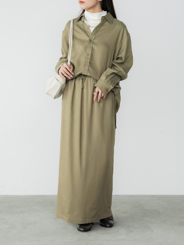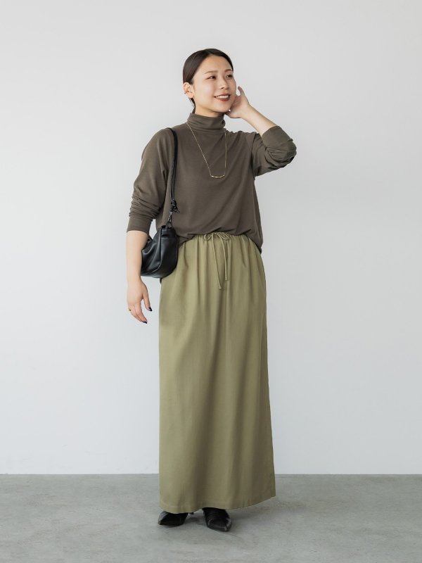 再生繊維(セルロース)を配合することで、落ち感が美しく、なめらかな風合いに仕上げています。